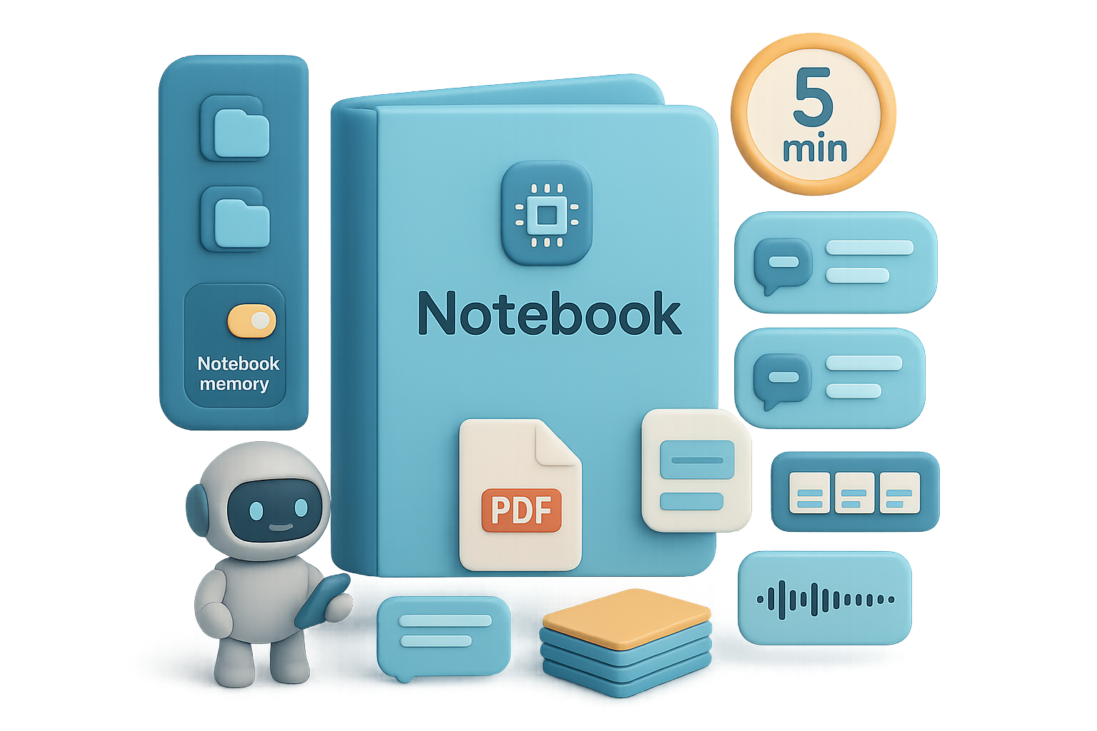 - Auto-made assets (audio summaries, slide decks, flashcards).
